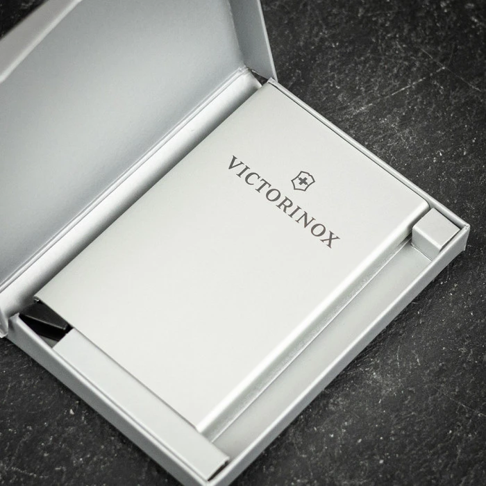 The aluminum component stops cards from breaking or bending, while premium materials and a streamlined silhouette make itÂ