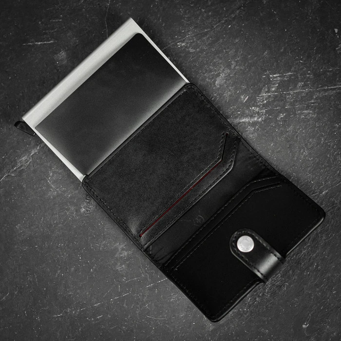 Looking for the perfect gift that will keep bank cards organized and data secure? Our Altius Secrid Leather Card Wallet reinvents accessories to meet today’s challenges. This innovative design blends an award-winning RFID protection cardprotector with an iconic Victorinox wallet, for safe, smooth transactions. It stores up to 8 cards and features a patented quick-access mechanism. Practicality, reimagined.