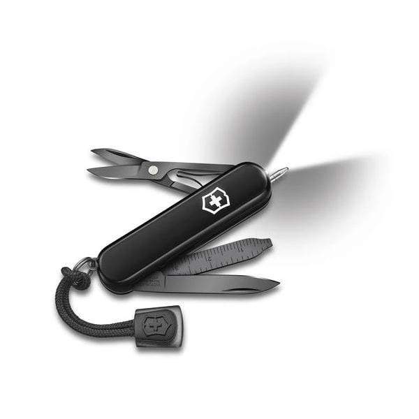 “Can I borrow a pen?” It’s a phrase you can strike from your vocabulary once you’ve slipped the Signature knife into your pocket because not only does it include all the traditional features of a Swiss Army Knife, it also includes a ballpoint pen. And with the addition of a bright LED, even darkness can’t hold you back. The Signature series has you covered like no other pocket knife.