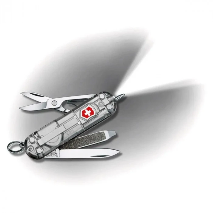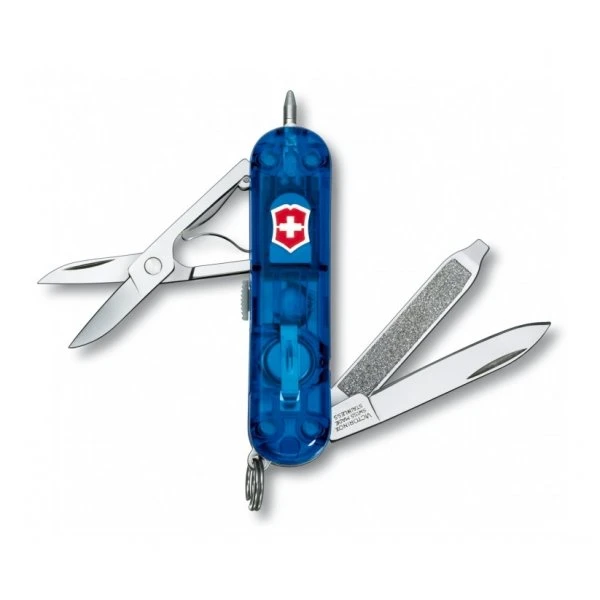 “Can I borrow a pen?” It’s a phrase you can strike from your vocabulary once you’ve slipped the Signature knife into your pocket because not only does it include all the traditional features of a Swiss Army Knife, it also includes a ballpoint pen. And with the addition of a bright LED, even darkness can’t hold you back. The Signature series has you covered like no other pocket knife.