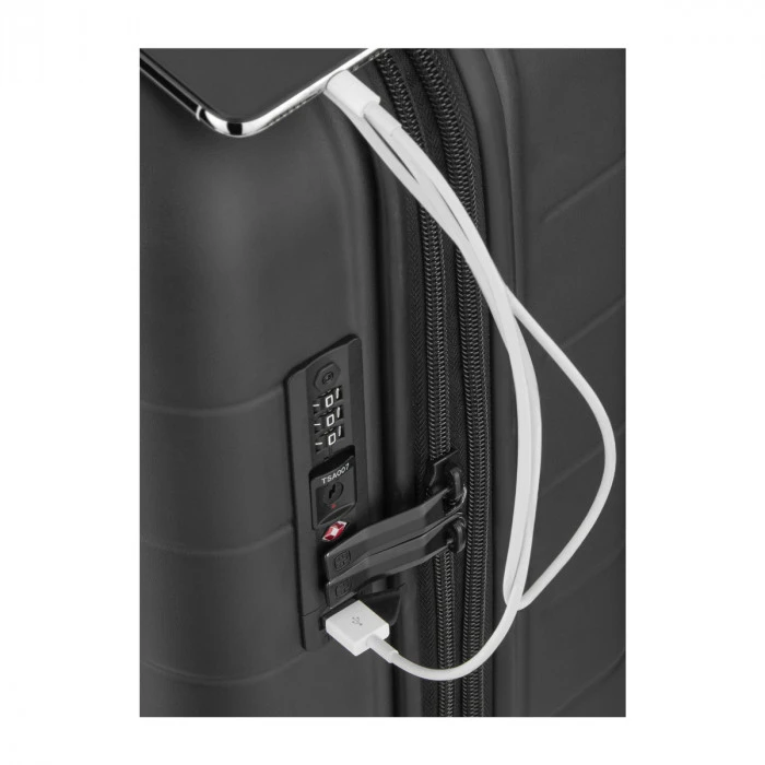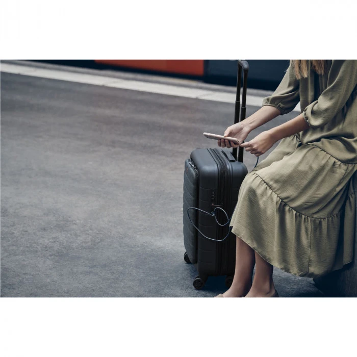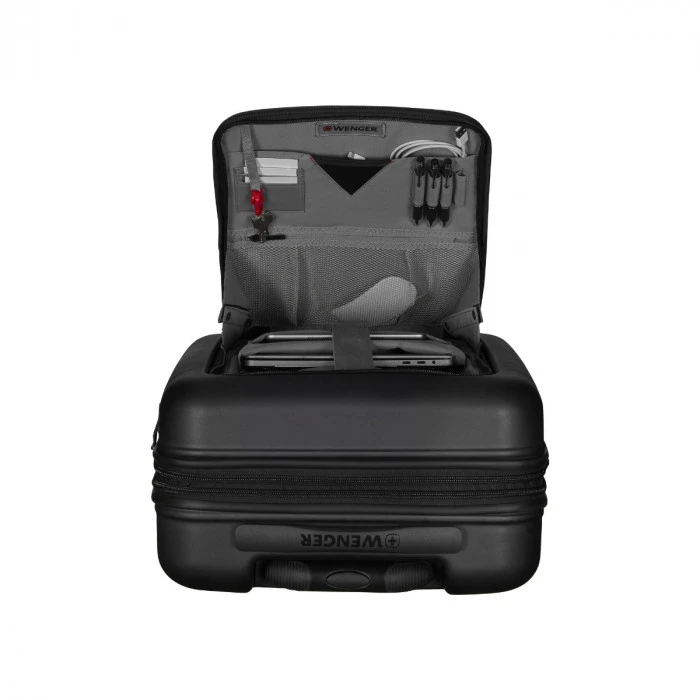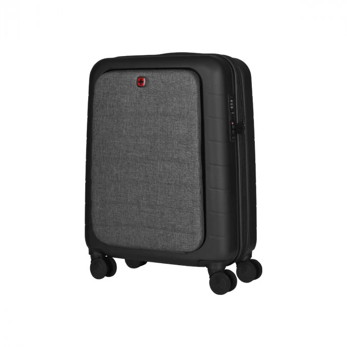 Robust yet perfectly portable, the Syntry Carry-On is a powerhouse rolling case with precision maneuverability. The compression molded front compartment safely stores your 14” laptop and 10” tablet, while the quick pocket offers speedy access to important items. Spacious and secure thanks to the combination lock and security zipper, there’s also a USB charger and integral ID tray. Four super quiet dual-caster wheels make for easy wheeling, so you can sail across the terminal or cruise along the platform.